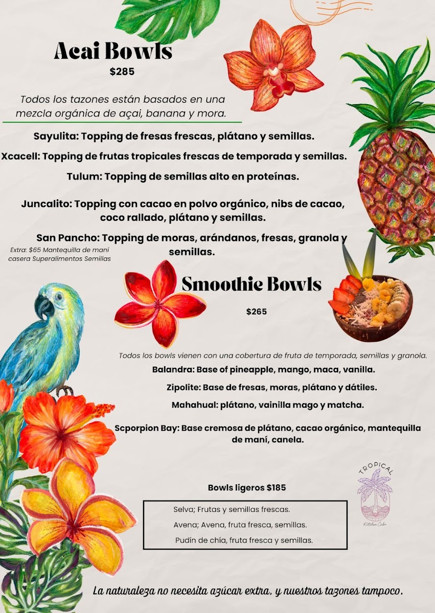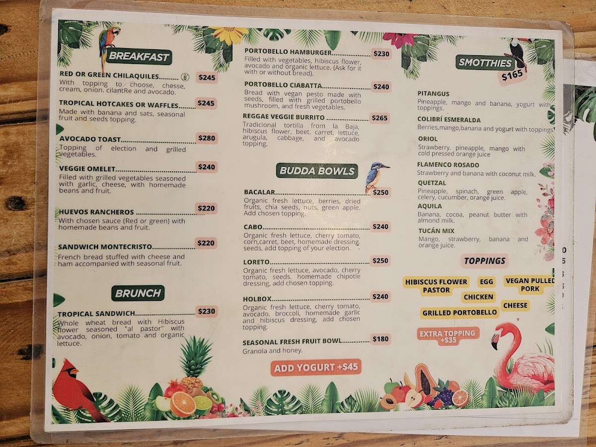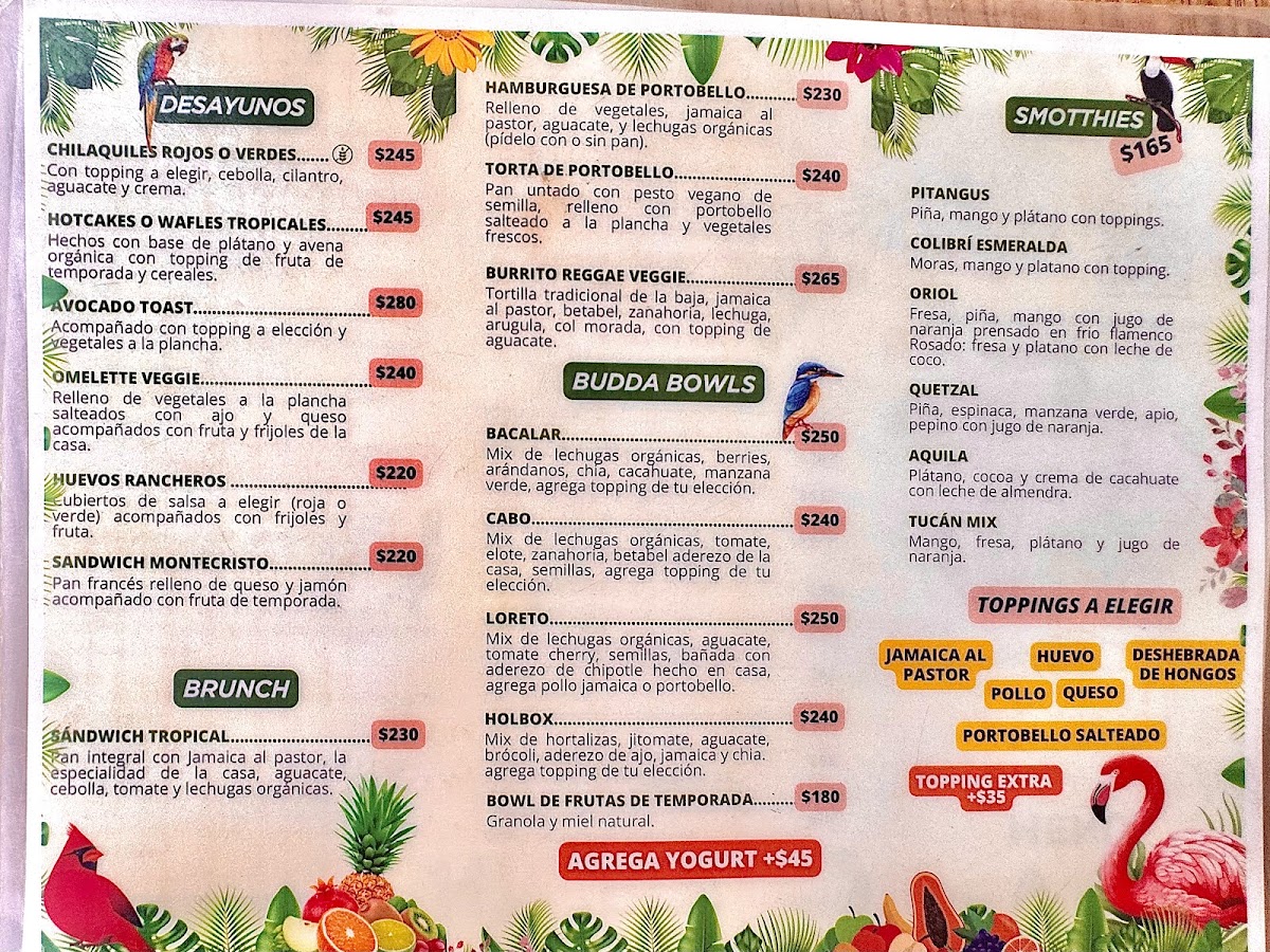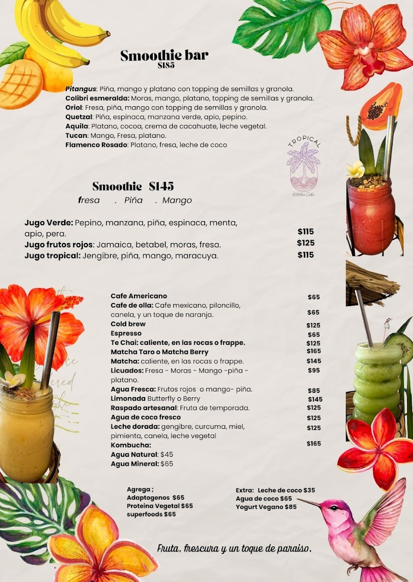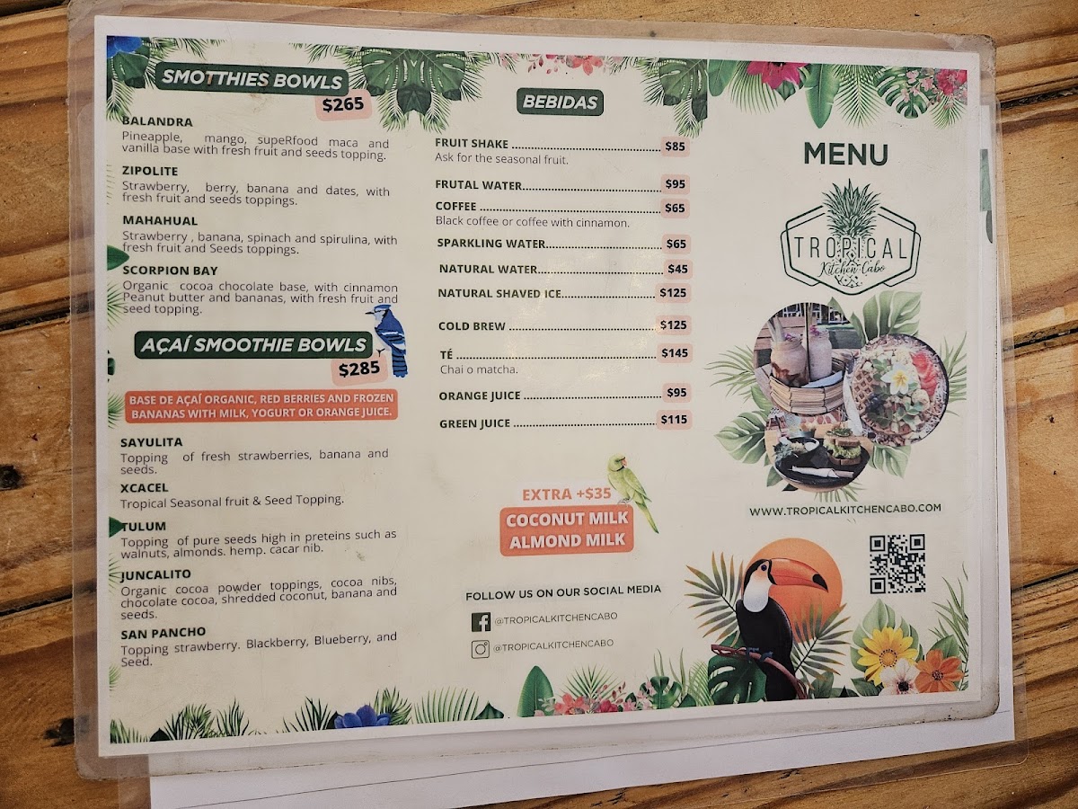 The menu at Tropical Kitchen Cabo offers a thoughtful selection of fresh, vibrant dishes and drinks that complement its relaxed, tropical setting. With a focus on wholesome, largely plant-based options, it blends Mexican flavors with nourishing ingredients, perfect for anyone seeking a light yet satisfying meal during brunch or a casual lunch.